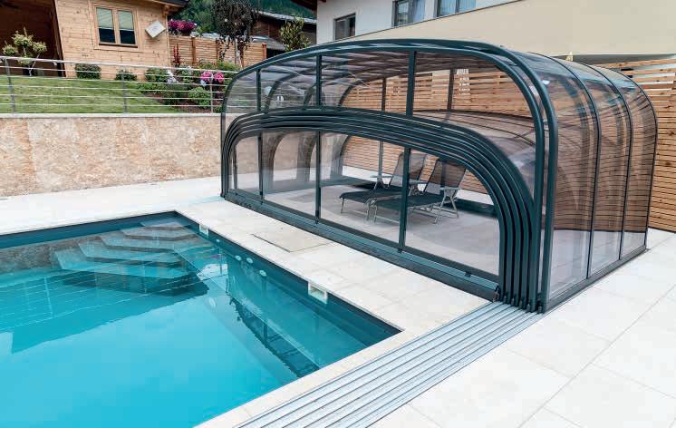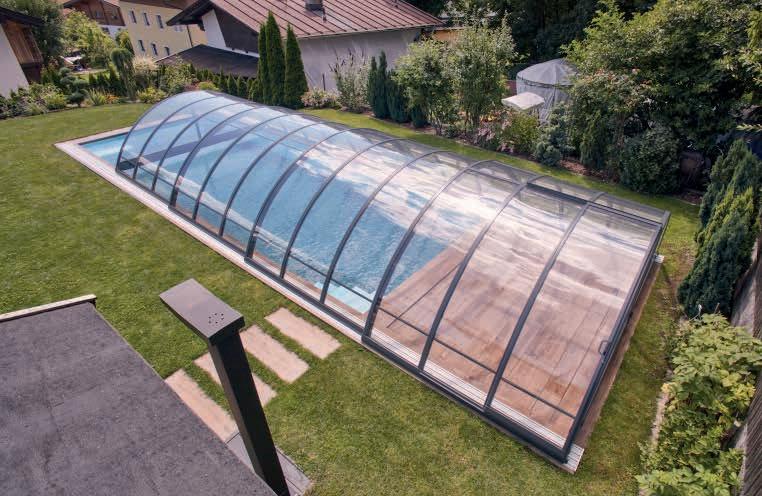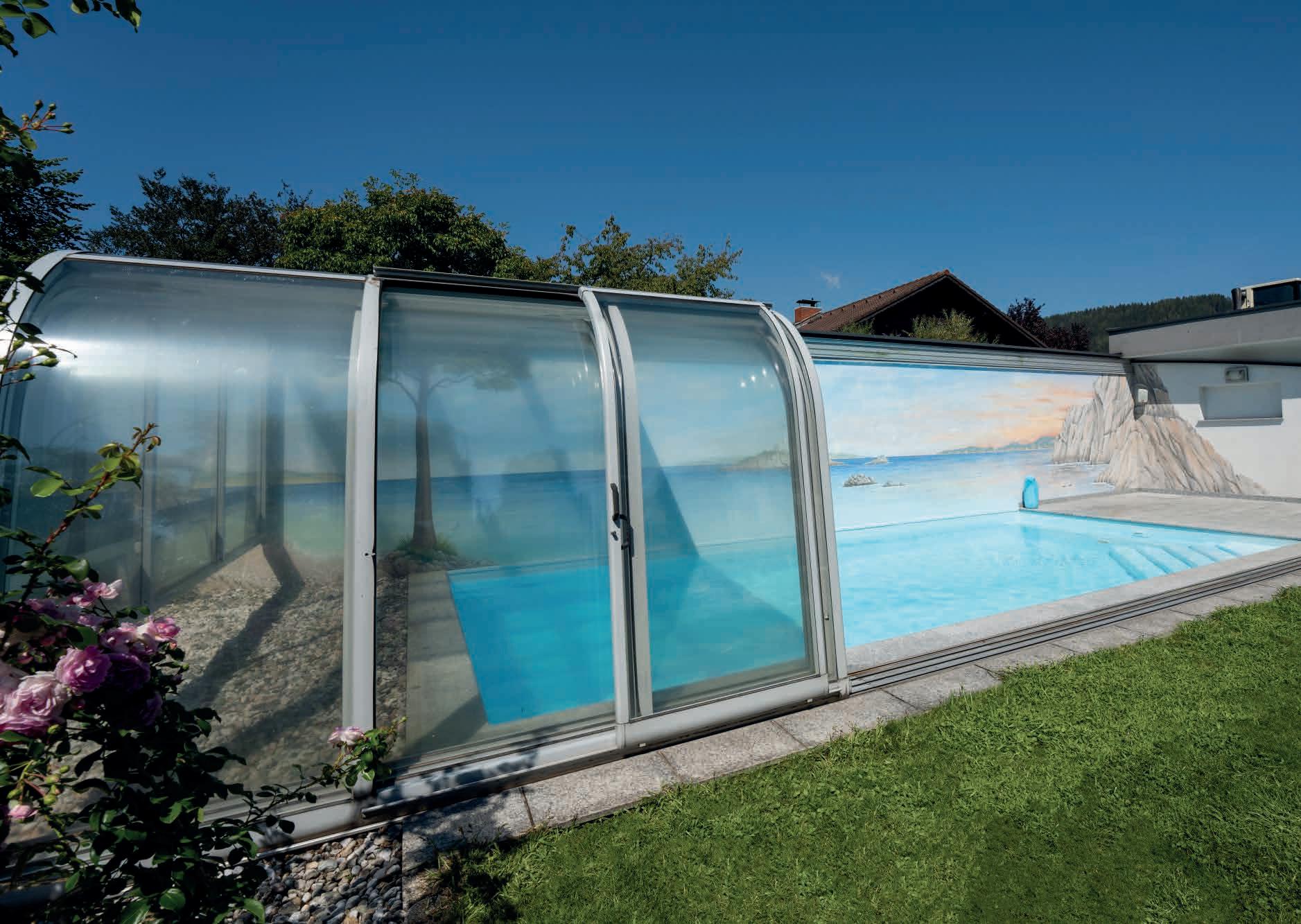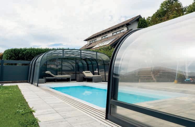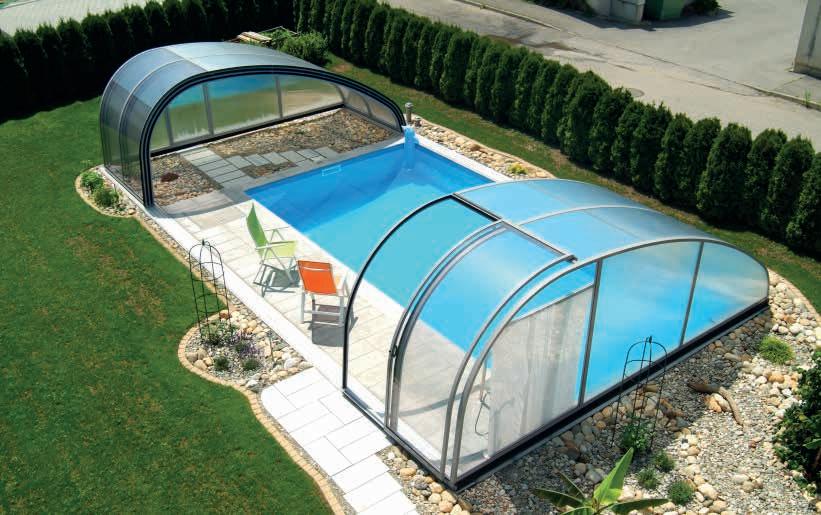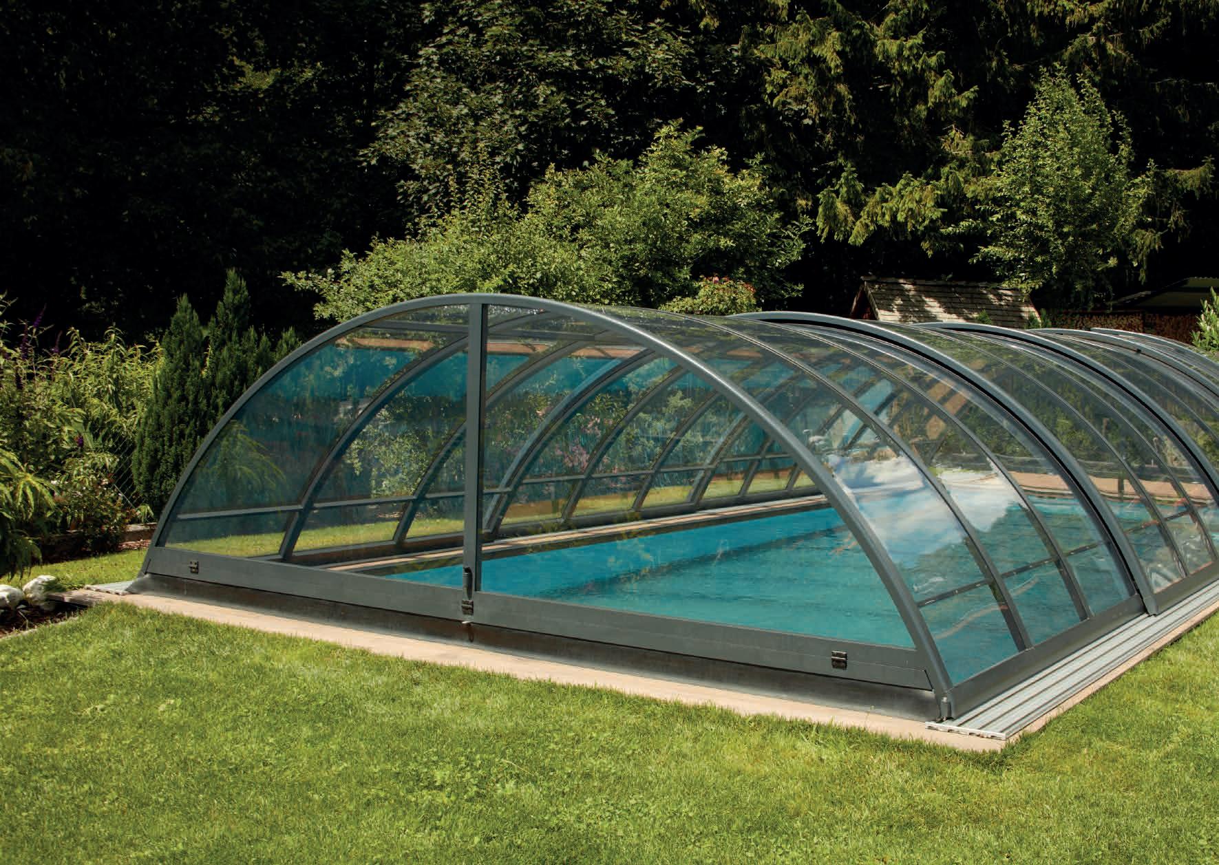Dieses bewährte Überdachungsmodell garantiert größten Badespaß bei maximalem Komfort auch in geschlossenem Zustand. Das klassische Design erfreut sich noch immer großer Beliebtheit und kann auf Wunsch auch mit Sonderradien geliefert werden.