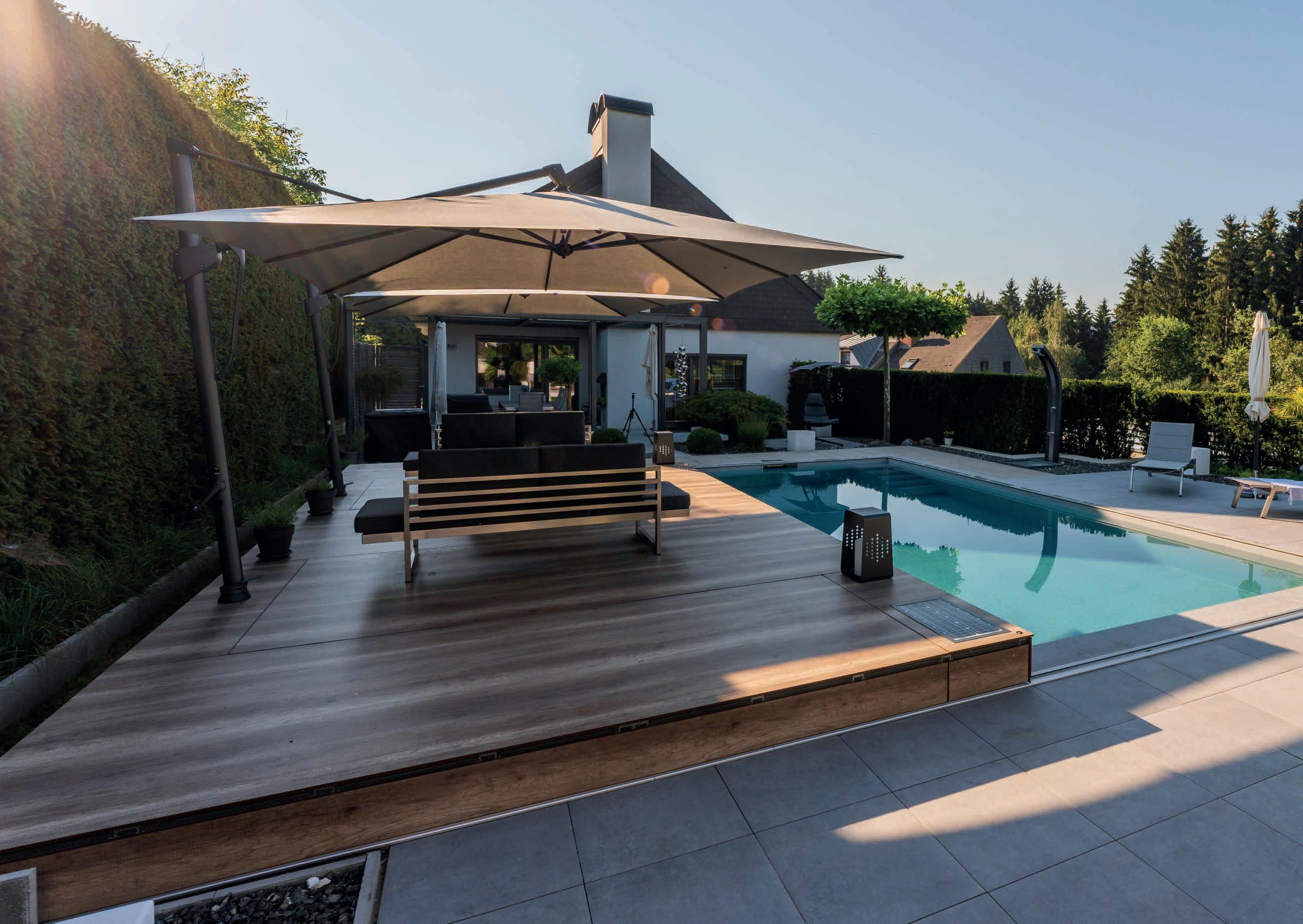 EN Transform your pool into a terrace and regain precious living space in your garden. For maximum convenience, we also supply this model with an integrated solar motor that can be conveniently operated via your smartphone. Can be delivered with or without coating.