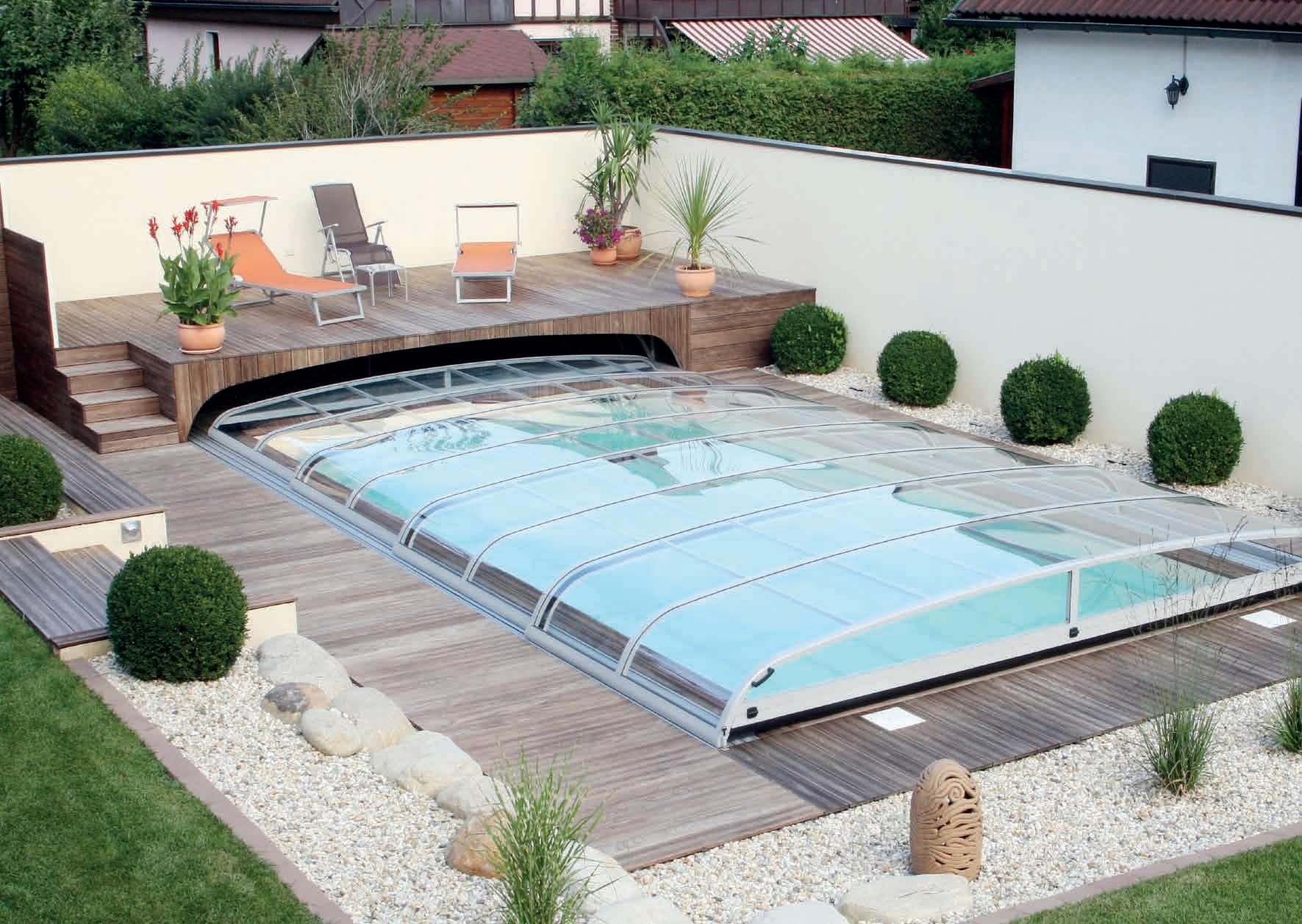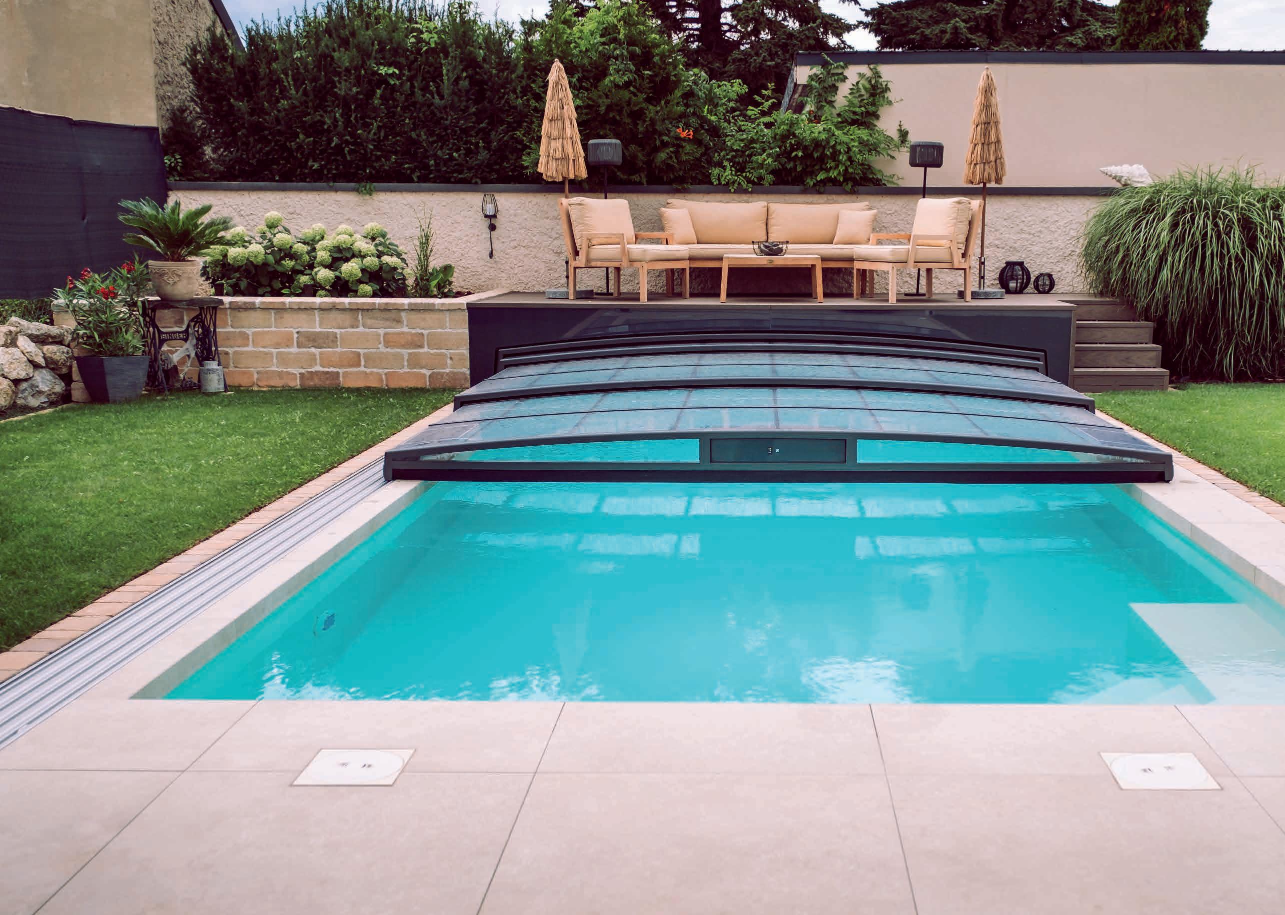 EN The cover of a pool is as important as the pool itself. A professionally manufactured and installed pool cover can extend your bathing fun by weeks or even months! It protects your pool from dirt, reduces heat loss and gives your pool a unique look.