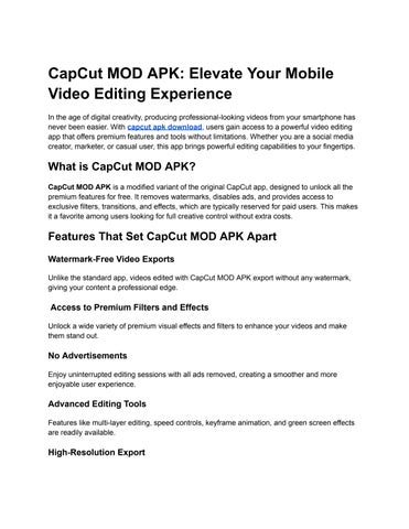 For anyone eager to elevate their video editing game without breaking the bank, CapCut MOD APK provides an outstanding solution With its unlocked features and user-friendly interface, it empowers users to create professional and engaging videos directly from their mobile devices