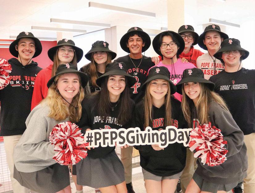 I WANT TO EXPRESS MY DEEPEST GRATITUDE, for your unwavering support of Pope Francis Preparatory School, which makes a signi!cant impact on the lives of our students today and tomorrow. Over the past year, Pope Francis Prep has achieved remarkable progress, raising over $540,000 for the Cardinal Fund and nearly $1,000,000 in total gifts. I am grateful for the support of 1,208 donors who made 1,525 gifts. Enhanced by our annual Day of Giving in March, the Cardinal Fund grew by $102,395 from more than 530 donors, in 30 di erent states, over this 24-hour period. is incredible feat would not have been possible without the generosity of our alumni and school community who believe in our mission and the transformative power of a Catholic education.