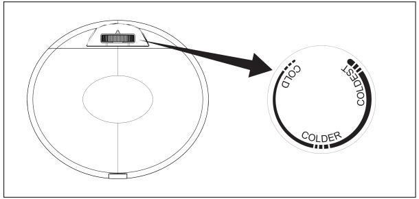 Spring and autumn: Set the temperature control knob to “COLDER”.