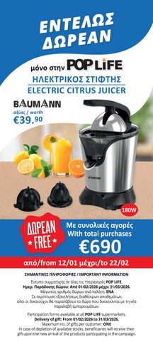 Με συνολικές αγορές €490 / With total purchases €490 από/from 22/01 μέχρι/to 28/02