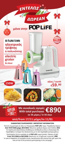 ΣΗΜΑΝΤΙΚΕΣ ΠΛΗΡΟΦΟΡΙΕΣ / IMPORTANT INFORMATION Έντυπο συμμετοχής σε όλες τις Υπεραγορές POP LIFE. Ημερ. Παράδοσης για ηλεκτρικό φουρνάκι αλογόνου: από 05/03/2021. Μέγιστος αριθμός για ηλεκτρικά φουρνάκια αλογόνου ανά πελάτη: ΕΝΑ. Σε περίπτωση εξαντλήσεως διαθέσιμων αποθεμάτων, όλοι οι δικαιούχοι θα παραλάβουν το δώρο που δικαιούνται με τη νέα παραλαβή εμπορευμάτων.