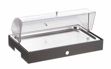 Each item is composed of a stainless steel base and a functional part following gastronorm standards. This make the buffet modular and easily adaptable to the different meals of the day from breakfast to dinner since the same base can be used with several functional parts