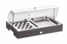 Do you think the plain stainless steel is a bit too cold? Just add some porcelain trays on your gastronorm basin.