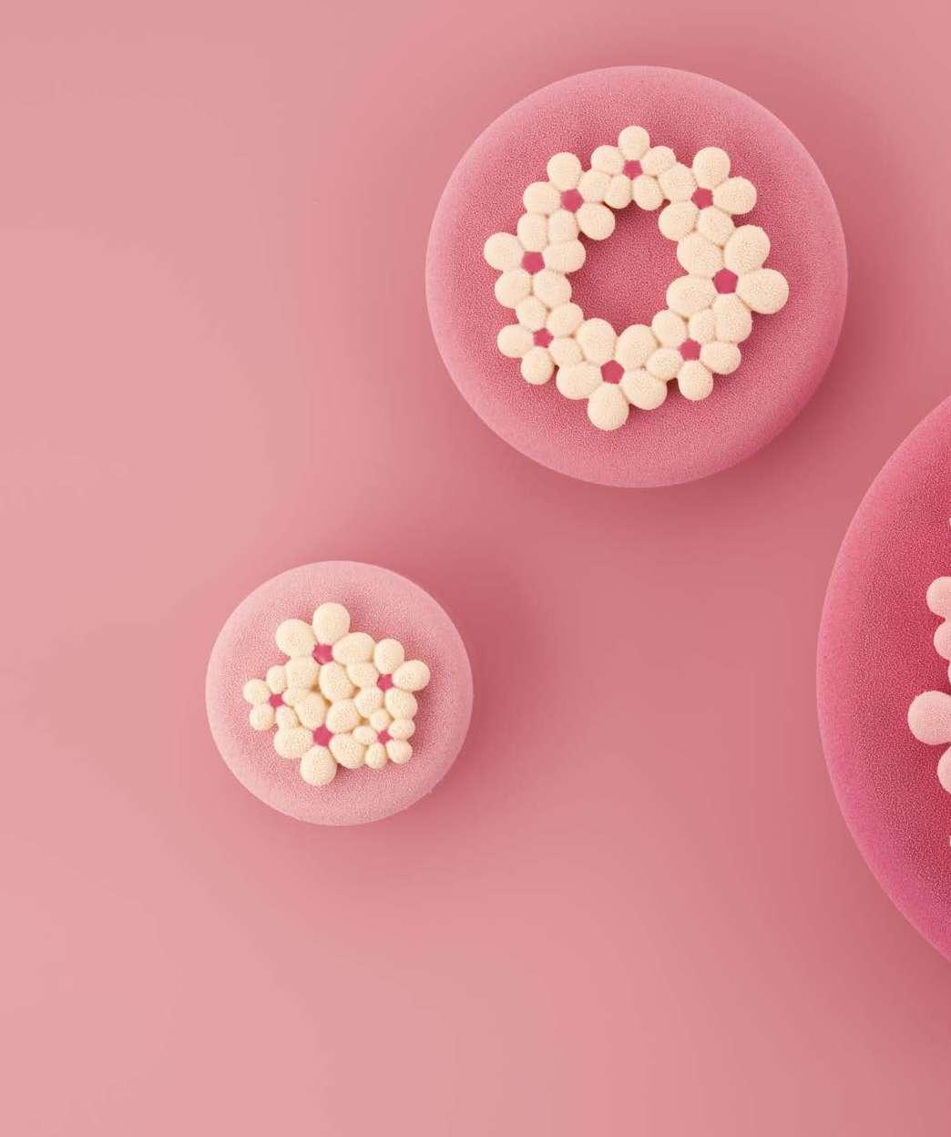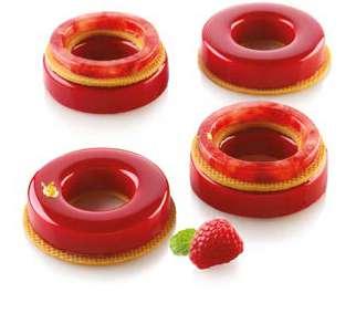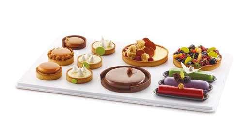 Silikomart kits for tartes consist in: microperforated Tplus+ rings for the creation of the shortcrust base and decorative silicone moulds that allow to create fine decorations.