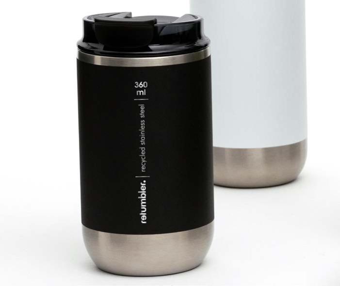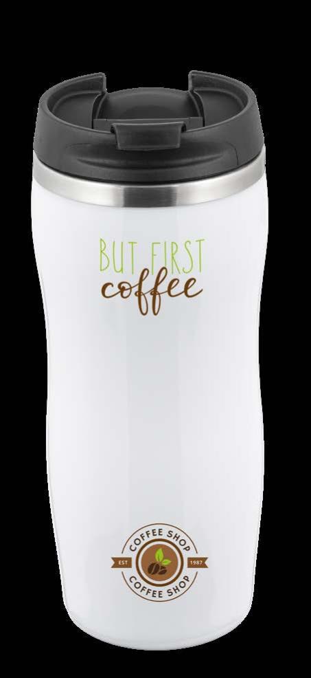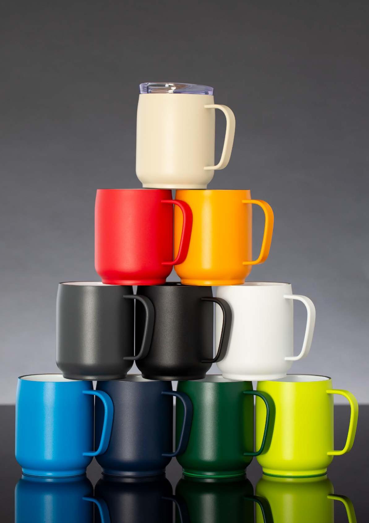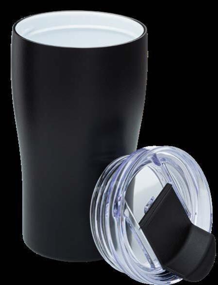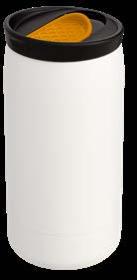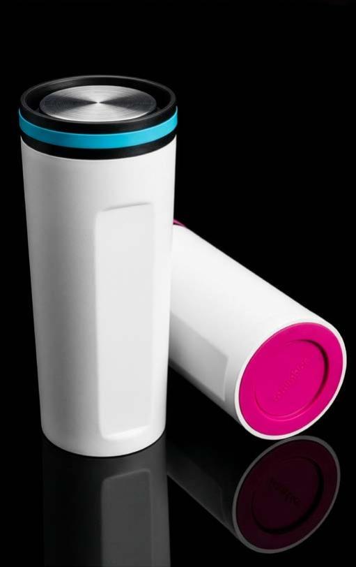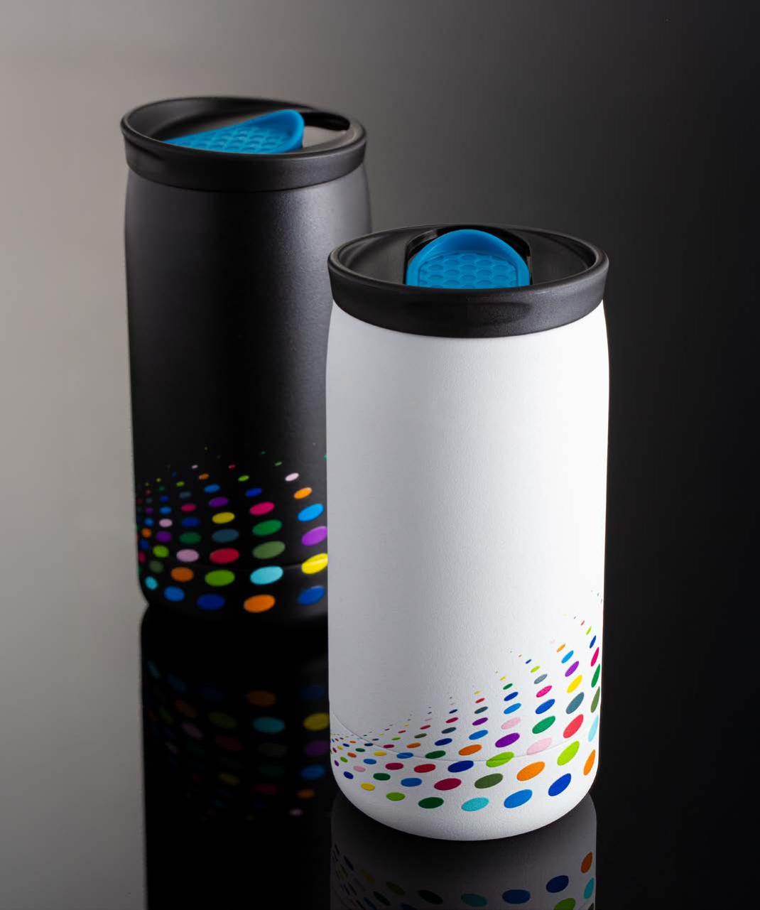 Während die Modelle eine weiße Innenbeschichtung besitzen, ist die schwarze Tasse auch Innen schwarz. Hergestellt aus recyceltem Edelstahl, erweist sich die doppelwandige Thermotasse als robust und langlebig. Die Isolation hält Ihre Getränke bis zu 4 Stunden warm oder 24 Stunden kalt. Die äußere Pulverbeschichtung sorgt für eine ansprechende Optik und angenehme Haptik. Ein auslaufhemmender Steckdeckel aus PP- und AS-Kunststoff ist optional erhältlich. Dabei können Sie den Schiebeverschluss aus 17 verschiedenen Farben wählen. Der Softboden aus TPR-Kunststoff bietet Rutschschutz und schützt die Tasse und den Untergrund vor Kratzern.