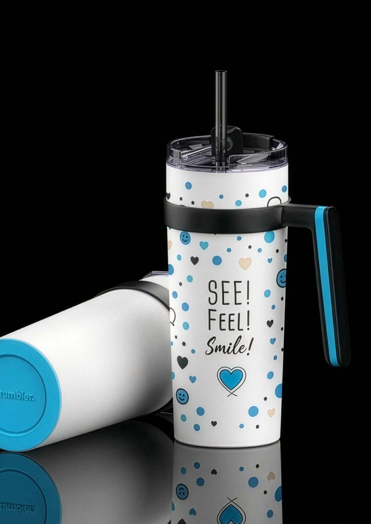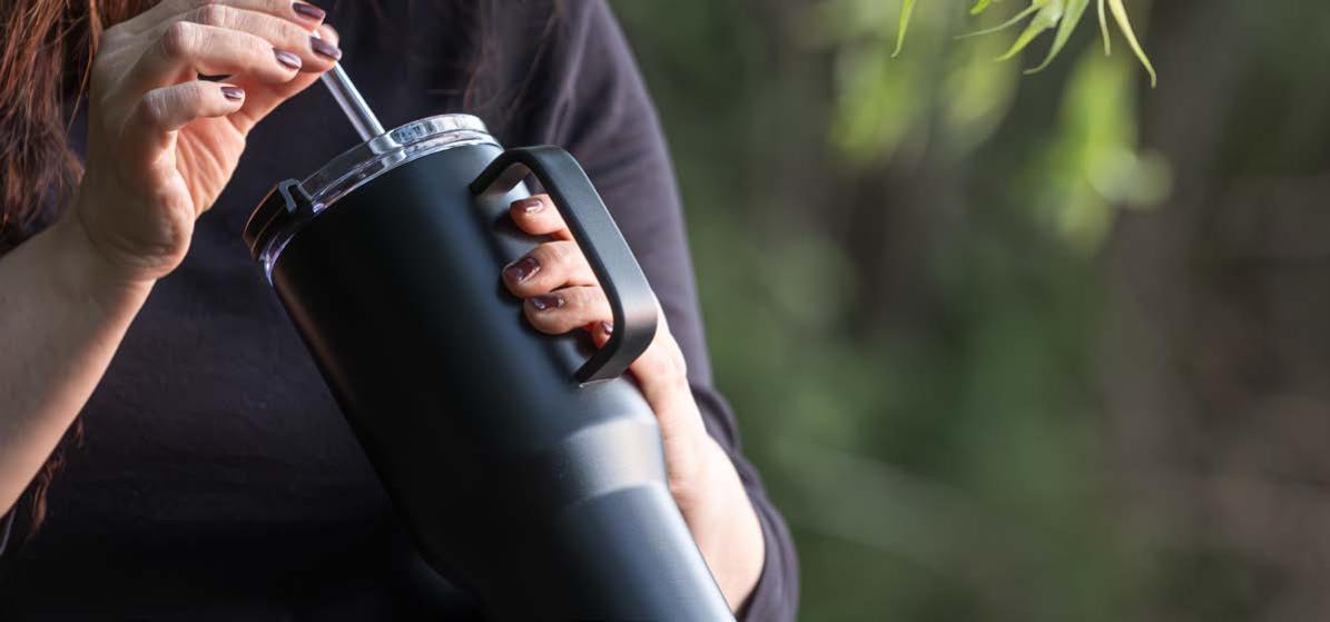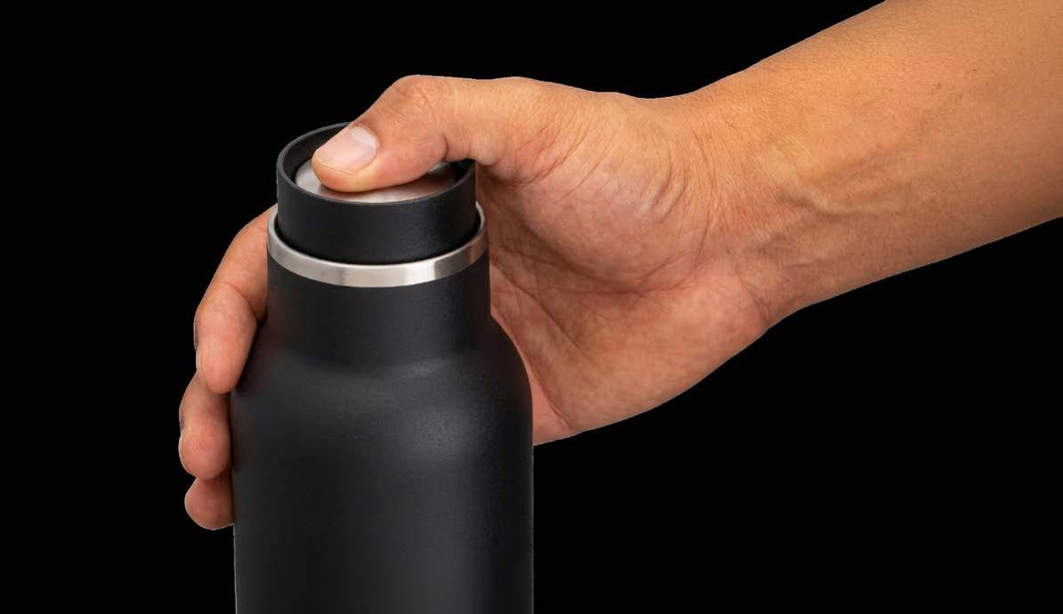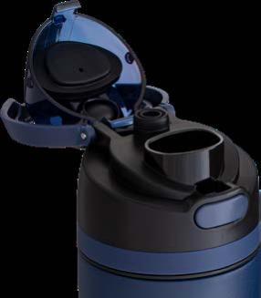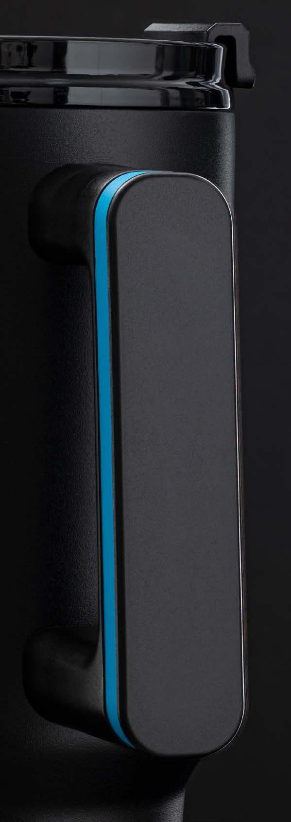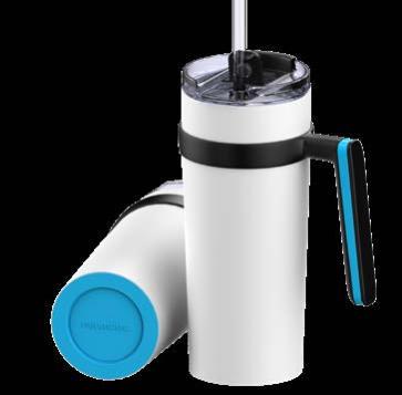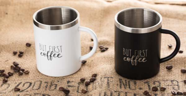 Während die Modelle eine weiße Innenbeschichtung besitzen, ist die schwarze Tasse auch Innen schwarz. Hergestellt aus recyceltem Edelstahl, erweist sich die doppelwandige Thermotasse als robust und langlebig. Die Isolation hält Ihre Getränke bis zu 4 Stunden warm oder 24 Stunden kalt. Die äußere Pulverbeschichtung sorgt für eine ansprechende Optik und angenehme Haptik. Ein auslaufhemmender Steckdeckel aus PP- und AS-Kunststoff ist optional erhältlich. Dabei können Sie den Schiebeverschluss aus 17 verschiedenen Farben wählen. Der Softboden aus TPR-Kunststoff bietet Rutschschutz und schützt die Tasse und den Untergrund vor Kratzern.