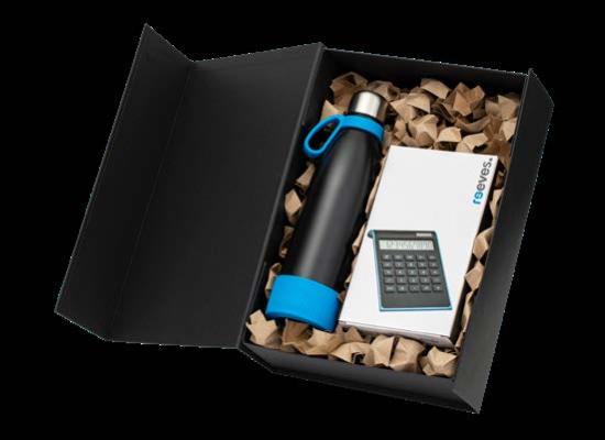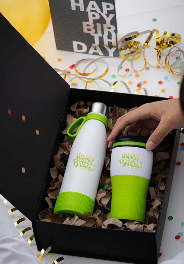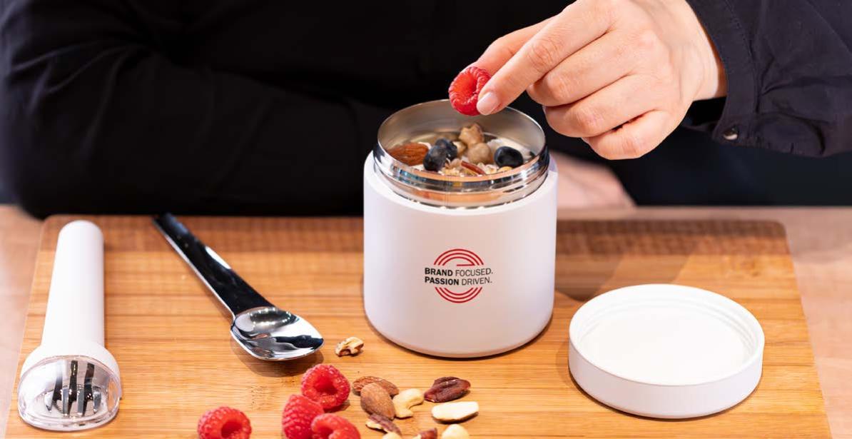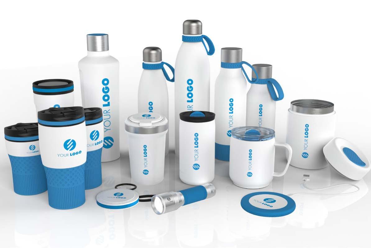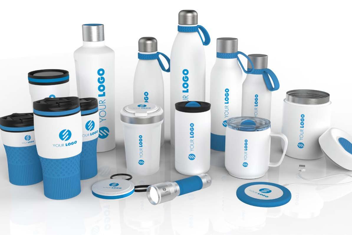 Ob Trink asche, Becher, Lunchbox oder Technik-Gadget – alle Artikel können im gleichen Farbkonzept gestaltet werden.