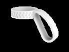Der silberne Taschenhaken aus Metall hat eine kreisrunde, weiß abgesetzte Veredelungsfläche auf der Vorderseite, die sich für ein ausdruckstarkes Doming anbietet. Zusätzlich wird dem Artikel eine Aluminiumplatte beigefügt, die für eine Veredelung mit Lasergravur genutzt werden kann.