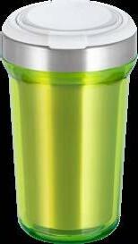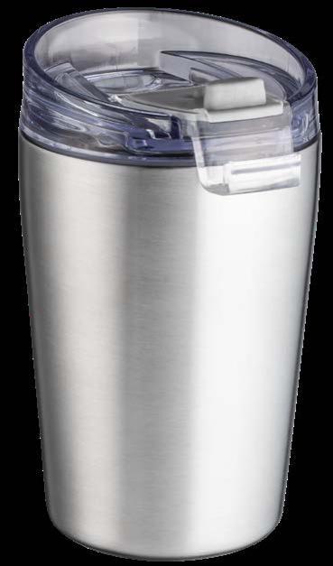 Dank der doppelwandigen Kupfer-Vakuum-Isolierung bleibt das Getränk bis zu 4 Stunden warm oder 24 Stunden kalt. Der Trinkbecher besteht aus recyceltem Edelstahl, während der Flip-Deckel aus PP- und AS-Kunststoff hergestellt ist. Tipp: Sowohl der Becher als auch der Deckel sind spülmaschinengeeignet.
