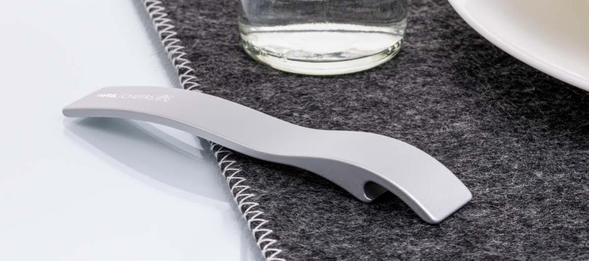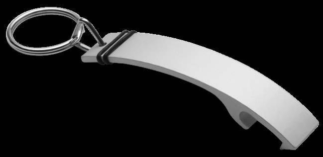 Geschwungener Schlüsselanhänger aus hochwertigem Aluminium als Flaschenöffner. Auf der gut sichtbaren Veredelungsfläche wirkt eine Lasergravur besonders hochwertig. Alternativ kann auch ein einfarbiger Tampondruck aufgetragen werden.