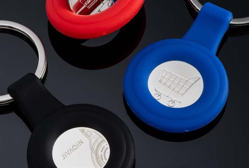Der schwarze Schlüsselanhänger mit rundem Silikonrand zeichnet sich einerseits durch seine angenehme Haptik und außerdem durch den praktischen Caddy Chip aus. Der Einkaufswagenchip aus Metall kann aus dem Silikonring rausgedrückt werden und nach Gebrauch wieder am unteren Rand des Silikonrings eingeschoben werden. Mit einem stabilen, metallenen Split-Ring lassen sich Ihre Schlüssel in bewährter Manier aufnehmen.