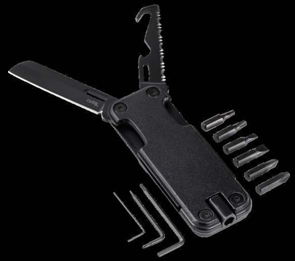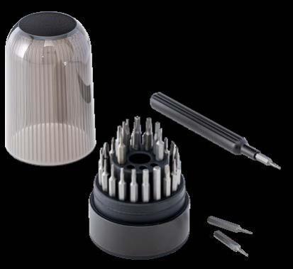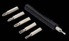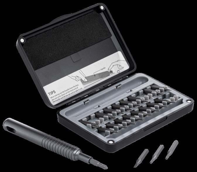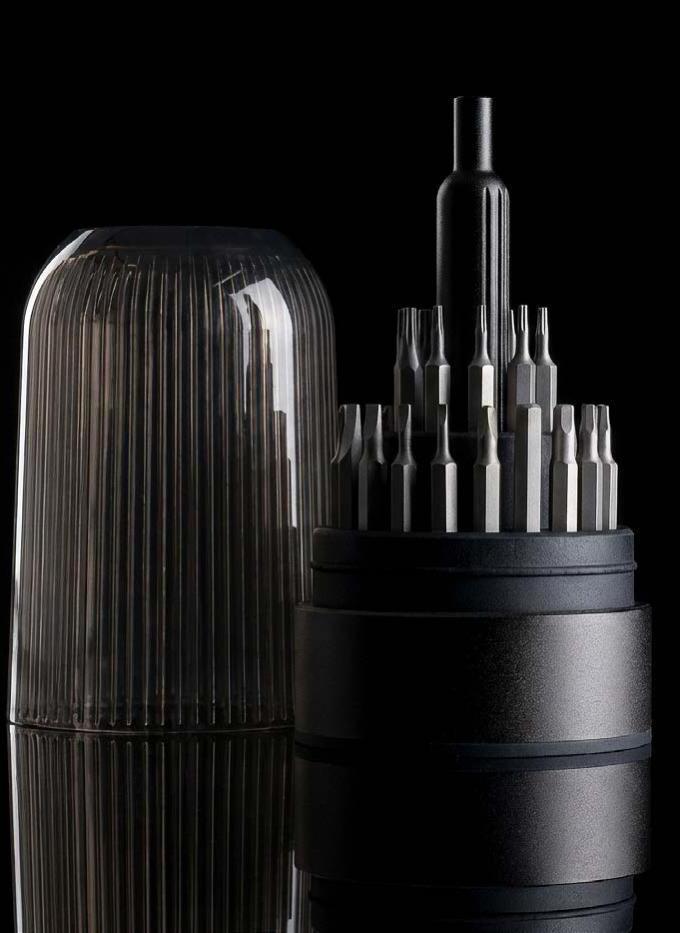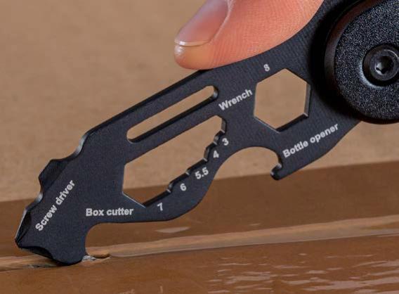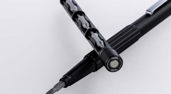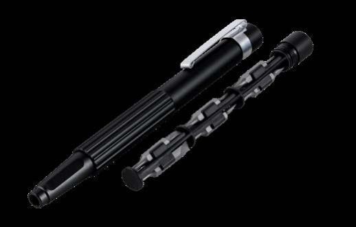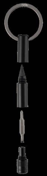 Der handliche Schlüsselanhänger bietet einen Bit für Feinmechanik und eine Endlos-Schreibspitze. Der Bit, hergestellt aus hartem Stahl mit einer Rockwell Härte von 55 bis 60 HRC, umfasst einen Schlitz- und einen Kreuzschlitzaufsatz. Mit denen können Sie Batteriefächer aufschrauben, Brillenbügel feststellen oder andere präzise Arbeiten durchführen. Die Endlos-Schreibspitze ist ideal, wenn Sie schnell einen Stift zur Hand haben müssen. Gefertigt aus recyceltem Aluminium und in Schwarz eloxiert, liegt der Schlüsselanhänger angenehm leicht in der Hand. Durch einfaches Drehen des Korpus gelangen Sie zum Bit und zur Schreibspitze.