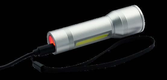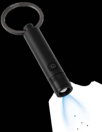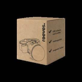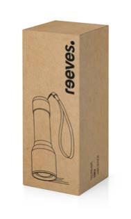 Dieses REFLECTS®-Eigendesign ist aus recyceltem, schwarz eloxiertem Aluminium gefertigt und besticht durch seine zeitlose Optik. Die 80 Lumen Taschenlampe lässt sich per Knopfdruck auf 50% oder 100% Lichtintensität einstellen. Den Lichtstrahl können Sie durch Vor- oder Zurückziehen des vorderen Teils der Lampe zoomen. Der 120 mAh Akku lädt in 2,5 Stunden über das mitgelieferte USB-C-Kabel auf, wobei ein rotes LED-Licht den Ladevorgang anzeigt. Bei voller Helligkeit beträgt die Leuchtdauer 30 Minuten, während diese bei 50 % Helligkeit 75 Minuten erreicht. Der USB-C-Anschluss ist unter einer Silikonabdeckung verborgen, wodurch der Artikel IPX4-spritzwassergeschützt ist. Für eine sichere Nutzung verfügt REEVES-Porto Light über Überspannungs-, Kurzschluss- und Überhitzungsschutz.