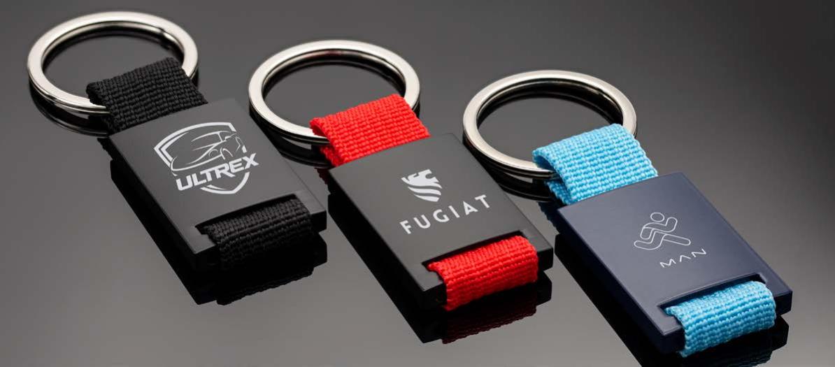 Sportlich-gri ge Eleganz - ein Schlüsselanhänger mit Format. Der Materialmix aus Metall und Nylonband macht den Schlüsselanhänger sportlich und elegant zugleich. Mit einer Lasergravur wird der Schlüsselanhänger zum perfekten Markenbotschafter.