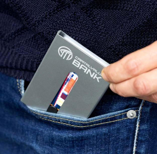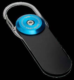 Der Aufhänger für Ihre Werbung! An diesem ausklappbaren Haken können Sie unterwegs Ihre Tasche befestigen. Die große Gravurfläche lässt Logos prominent wirken. Alternativ setzt ein vollflächiges Doming auf der runden Oberseite ihre Werbebotschaft brillant in Szene.