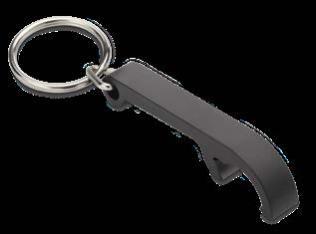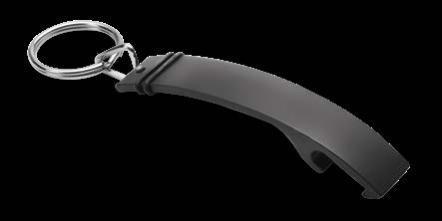 Ein stabiler und hochwertiger Flaschenöffner direkt am Schlüsselbund. Der Schlüsselanhänger in Schwarz bietet eine gut sichtbare Veredelungsfläche für eine hochwertige Lasergravur oder einen einfarbigen Tampondruck.