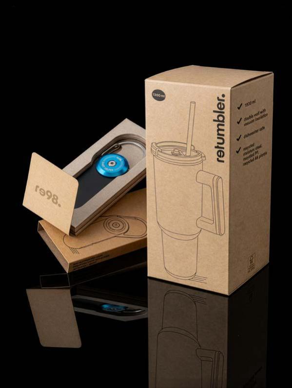 RE98® vereint bewährte Klassiker und nützliche Alltagshelfer. Das Sortiment bietet vielseitige Produkte, die sich exibel einsetzen lassen und in vielen Situationen einen praktischen Mehrwert bieten. Vertraute Formen werden mit zeitgemäßen Ideen kombiniert, um eine breite Einsetzbarkeit zu ermöglichen. RE98® scha t so eine solide Basis für universell einsetzbare Werbebotschaften.
