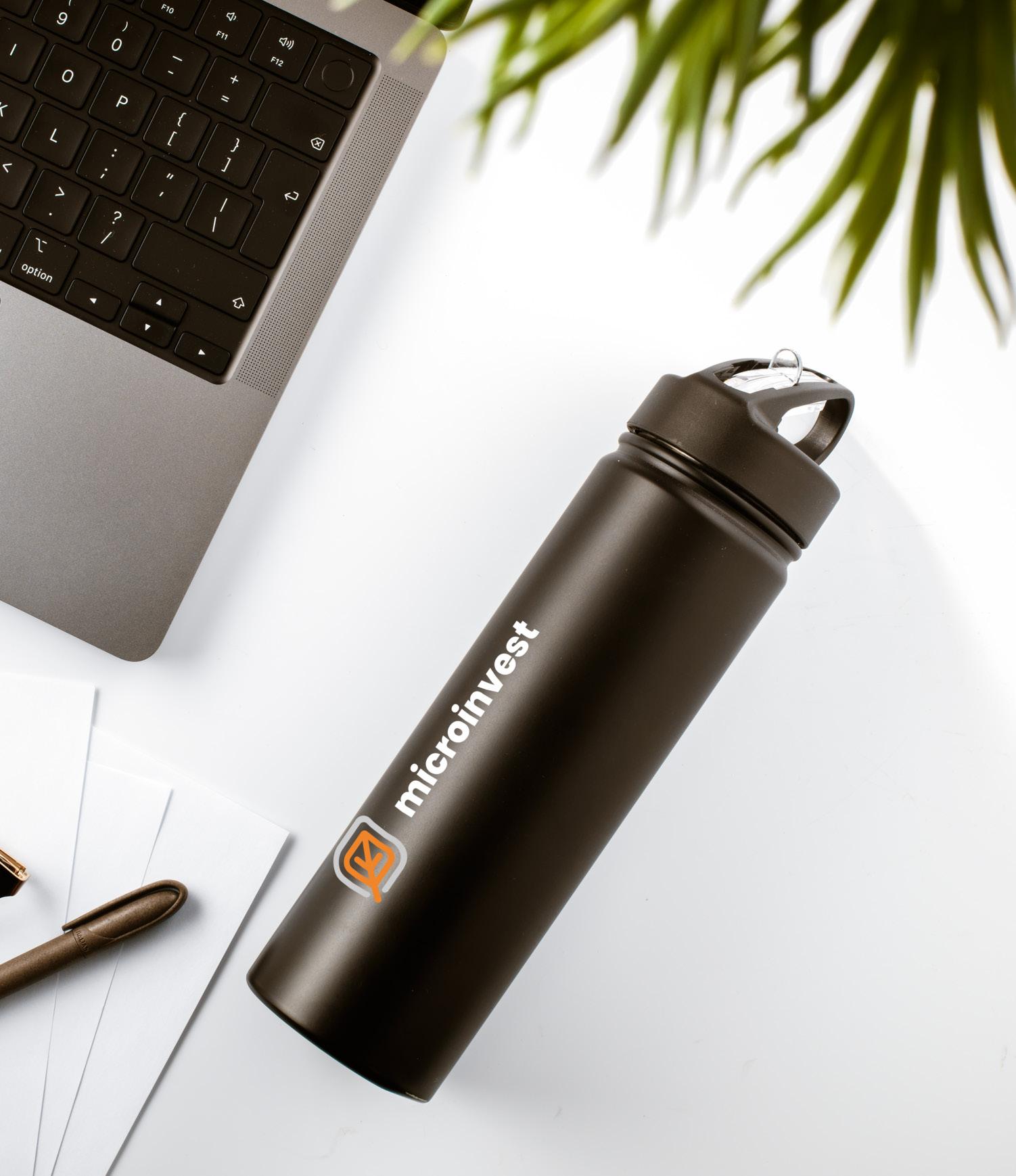 Doppelwandige, auslaufsichere Thermosflasche aus recyceltem Edelstahl. Mit praktischem Schraubverschluss. Die Flasche verfügt über ein einklappbares Mundstück und einen verschließbaren Strohhalm. Wunderschönes Finish mit seidenmatter Oberfläche. Geeignet, um heiße und kalte Getränke auf der richtigen Temperatur zu halten. Fassungsvermögen: 500 ml. Maße: Ø 6,8 x 25,5 cm. 275 g.