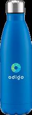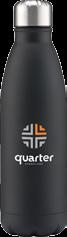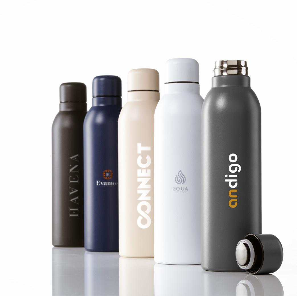 Doppelwandige, vakuumisolierte, rostfreie Wasserflasche/ Thermoflasche. Mit tropfsicherem Schraubdeckel. Hergestellt in Metallic oder mit schöner, matter Beschichtung (nur schwarz und weiß). Geeignet für das Kalt- oder Warmhalten von Getränken. Fassungsvermögen: 500 ml. Maße: Ø 7,3 x 26 cm. Pro Stück in einer Verpackung. 270 g.