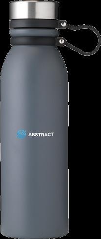 Doppelwandige, vakuumisolierte, auslaufsichere EdelstahlWasserflasche/Thermoflasche. Der Schraubverschluss ist an einer drehbaren Silikon-Trageschlaufe befestigt und rastet beim Öffnen der Flasche ein. So haben Sie immer eine Hand frei. Geeignet zur Temperaturerhaltung von kalten oder heißen Getränken. Fassungsvermögen: 600 ml. Maße: Ø 7,3 x 25,2 cm. Pro Stück in einer Verpackung. 295 g.