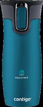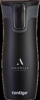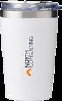Doppelwandiger Thermobecher-To-Go aus 100% recycelbarem Biokunststoff. Hält heiße oder kühle Getränke auf Temperatur. Dieser haltbare Becher hat einen Deckel mit Schraubverschluss mit einer Trinköffnung mit integriertem Verschluss um versehentliches Auslaufen zu verhindern.