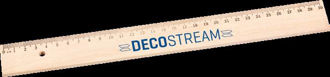 Holzlineal (30 cm) mit eingelegtem Metallstreifen. Maße: 30,9 x 3,4 x 0,4 cm. 21 g.