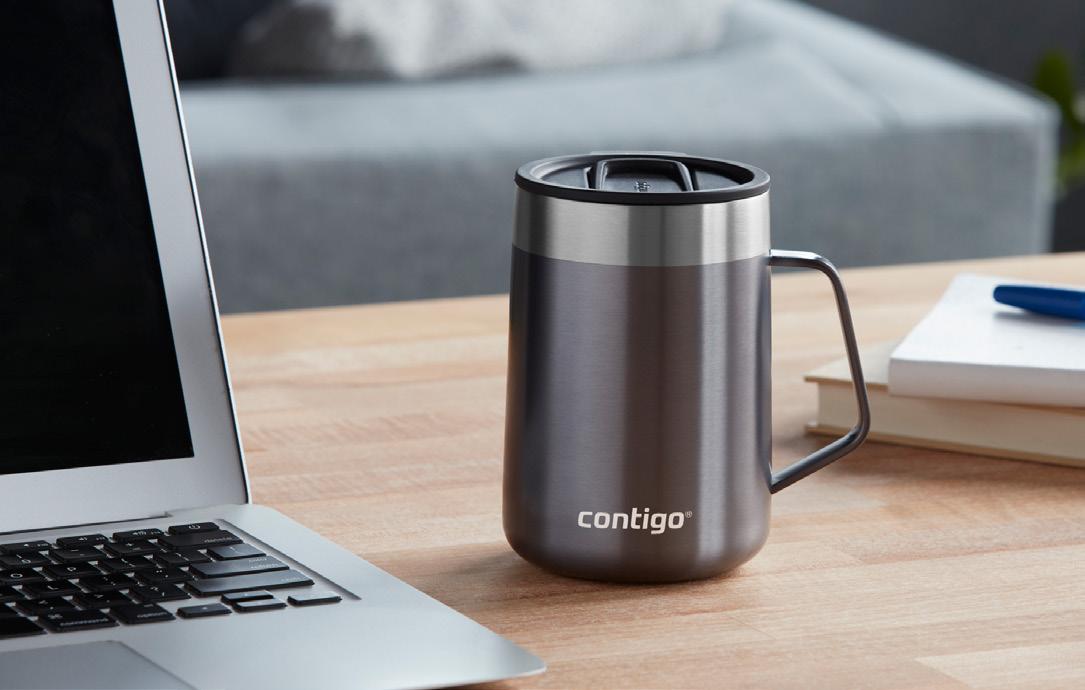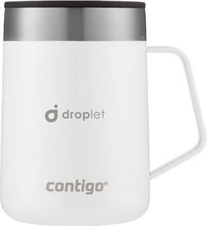 Doppelwandiger Thermobecher aus recyceltem Edelstahl. Mit wunderschöner, hochglänzender Oberfläche. Ausgestattet mit einem Kunststoffgriff und einem dicht schließenden Aufsteckdeckel mit Schiebe-/Klicköffnung. Geeignet, um kalte oder heiße Getränke auf der richtigen Temperatur zu halten.