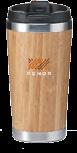 Doppelwandiger, auslaufsicherer Thermobecher mit EdelstahlInnenseite und Bambus-Finish auf der Außenseite. Mit Schraubdeckel, Klicköffnung und rutschfester Unterseite. Fassungsvermögen: 450 ml. Maße: Ø 8 x 17 cm. Pro Stück in einer Verpackung. 180 g.
