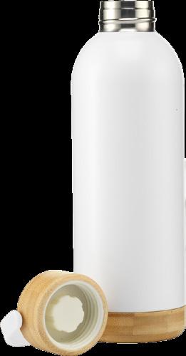 Doppelwandige, auslaufsichere Trinkflasche / Thermoskanne aus Edelstahl mit Bambus-Schraubverschluss. Vakuumisoliert. Eignet sich für heiße oder kalte Getränke, die auf einer konstanten Temperatur gehalten werden. Fassungsvermögen: 500 ml. Maße: Ø 7 x 21,2 cm. Wird einzeln in einem Kraftkarton geliefert. 258 g.