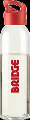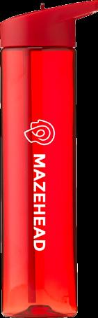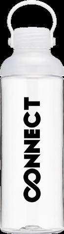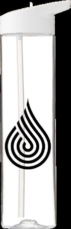 Transparente, BPA-freie Wasserflasche aus Kunststoff. Mit Schraubverschluss aus Edelstahl. Das schlanke Design fällt sofort ins Auge und liegt besonders bequem in der Hand. Auslaufsicher. Fassungsvermögen: 650 ml. Maße: Ø 6,7 x 23 cm. 88 g.