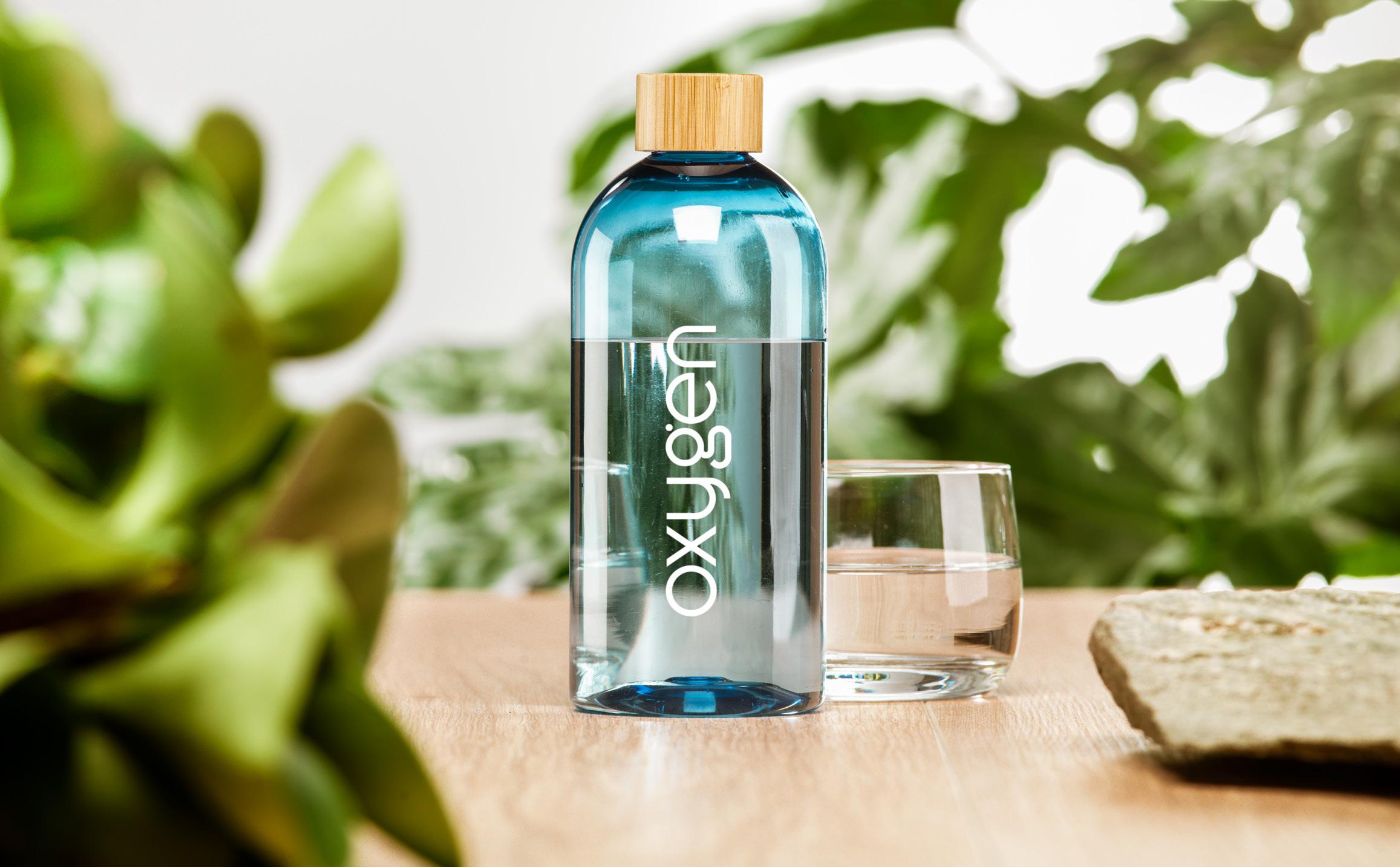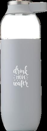 Luxuswasserflasche aus klarem, hochwertigem Eastman Tritan”: BPA-frei, umweltbewusst, nachhaltig und wiederverwendbar. Mit auffallender, weicher PP-Schutzhülle. Schraubverschluss mit Edelstahlakzent und praktischem Tragring. Auslaufsicher.