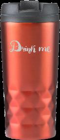Doppelwandiger, auslaufsicherer Edelstahl-Thermobecher mit Schraubdeckel und Klicköffnung. PP-Innenwand. Mit auffallendem geometrischem 3D-Rautenmuster im Halter. Rutschfester Boden. Tropfsicher. Fassungsvermögen: 300 ml. Maße: Ø 7,3 x 16,5 cm. Pro Stück in einer Verpackung. 150 g.
