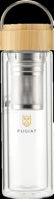 Doppelwandige Flasche aus hochwertigem, transparentem Borosilikatglas. Enthält ein Edelstahl-Ei mit Teefilter für losen Tee, der dem Wasser Geschmack verleiht. Mit BambusSchraubverschluss und Edelstahl-Tragegriff. 100% auslaufsicher.