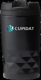 Doppelwandiger, auslaufsicherer Edelstahl-Thermobecher mit Schraubdeckel und Klicköffnung. PP-Innenwand. Mit auffallendem geometrischem 3D-Rautenmuster im Halter. Rutschfester Boden. Fassungsvermögen: 250 ml. Maße: Ø 7 x 13,8 cm. Pro Stück in einer Verpackung. 130 g.