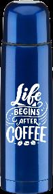 Vakuumisolierte Edelstahl-Thermoflasche mit Schraubverschluss/Trinkbecher und handlichem Schanksystem mit Druckverschluss. Fassungsvermögen 500 ml. Maße: Ø 6,8 x 24,5 cm. Pro Stück in einer Verpackung. 320 g.