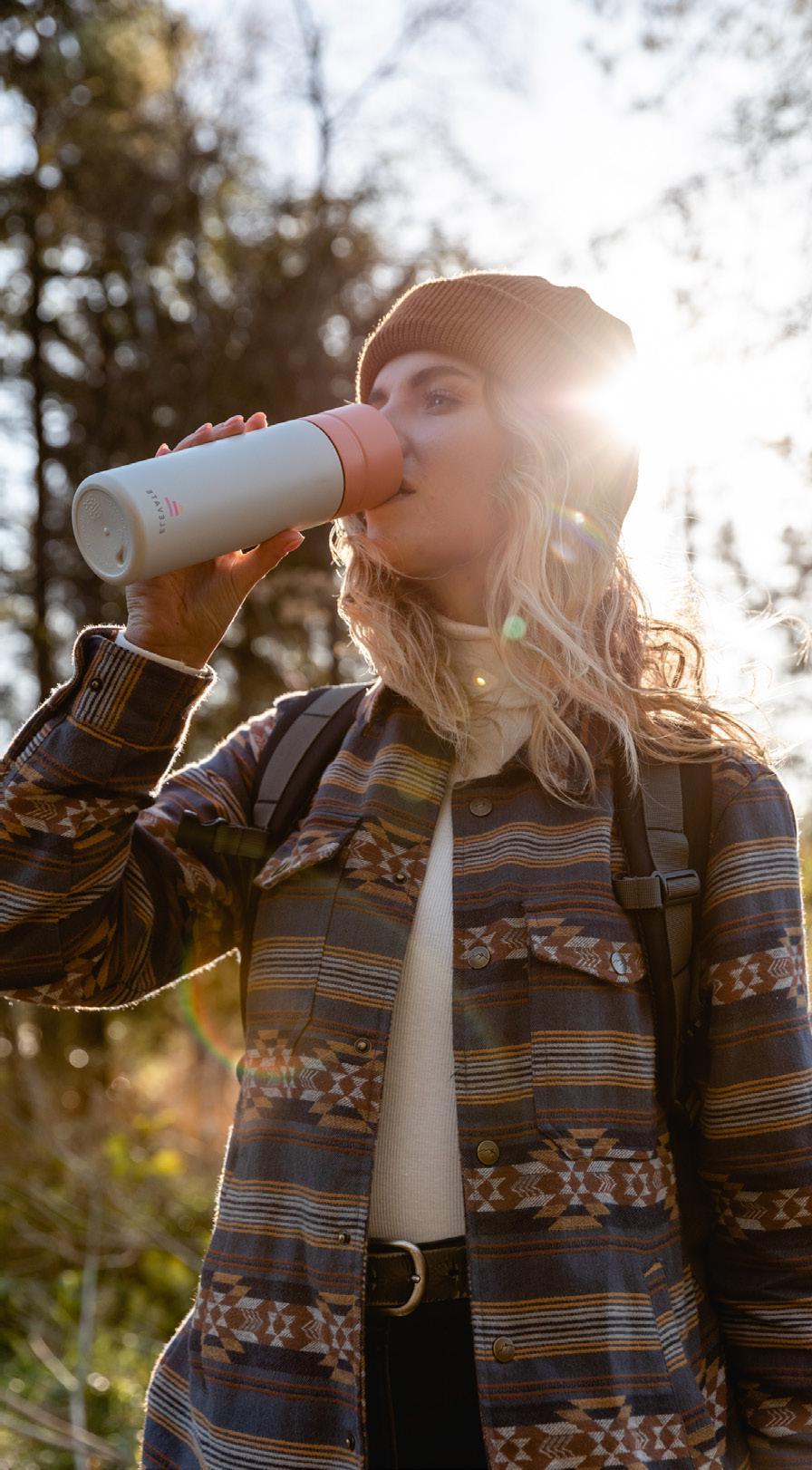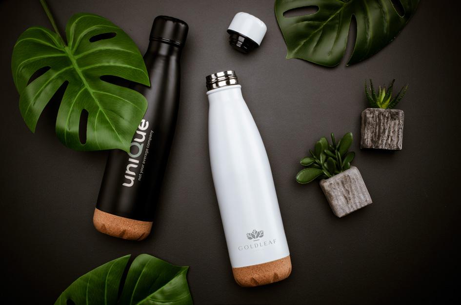 Doppelwandige, vakuumisolierte Wasserflasche/Thermosflasche aus Edelstahl. Mit auslaufsicherem Schraubverschluss. Mit einer schönen matten Oberfläche. Das markante Korkdetail auf der Unterseite verleiht der Flasche ein natürliches Aussehen.