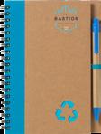 Umweltfreundlicher Kugelschreiber mit Halter aus Recyclingpapier. Der farbige Clip, der Druckknopf und die Spitze bestehen aus biologisch abbaubarem PLA. Mit blauer Tinte.