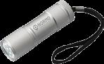 Blauschreibender oder schwarzschreibender Kugelschreiber aus Aluminium mit mattfarbenem Gehäuse in Metalloptik und metallenem Clip/Druckknopf. Maße: Ø 1 x 13,7 cm. 14 g.
