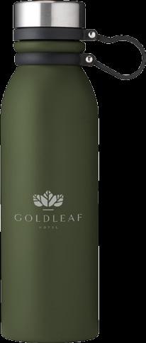 Doppelwandige Wasserflasche/Thermosflasche aus recyceltem Edelstahl. Vakuumisoliert und auslaufsicher. Mit einer wunderschönen Pulverbeschichtung versehen. Geeignet, um kalte oder heiße Getränke auf der richtigen Temperatur zu halten. Fassungsvermögen: 470 ml. Maße: Ø 6,8 x 24,8 cm. Wird einzeln in einem Kraftkarton geliefert. 235 g.