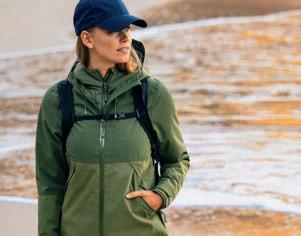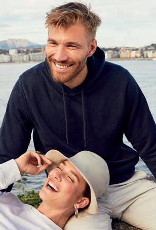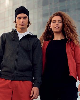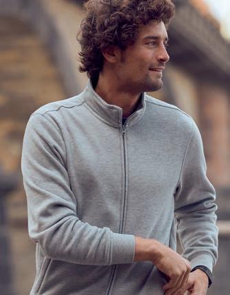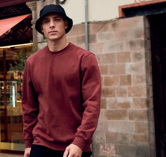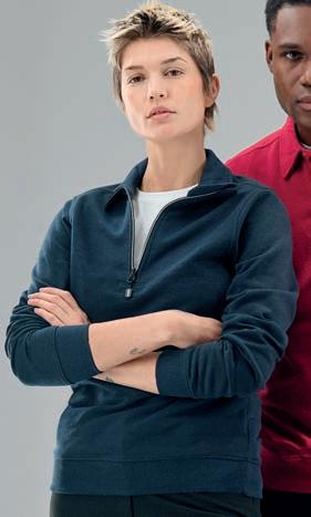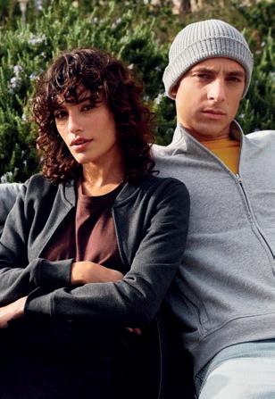 60% Bio-Baumwolle, 40% recyceltes Polyester; 180 g/m2 85% Bio-Baumwolle, 15% Viskose (Fb. 120) schrittweise Umstellung auf Bio-Baumwolle und recyceltes Polyester