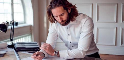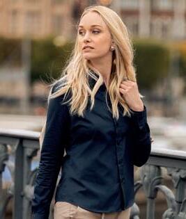 Leichtes langarm T-Shirt in schmaler Passform, Nackenband mit Elastan, Herren in Rundstrick, Damenmodell mit Seitennähten.