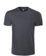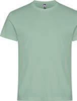 Rundhals-T-Shirt für Damen und Herren. Hoher Tragekomfort durch ringgesponnene, gekämmte und enzymgewaschene Baumwolle. Elastischer 2-lagiger Rippstrick am Halsbündchen.