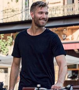 Feines Interlock-T-Shirt aus 100% ringgesponnener Bio-Baumwolle, doppelt vorgeschrumpft und enzymgewaschen für ein perfekt weiches Tragegefühl. Durch die Interlock-Verarbeitung extrem strapazierfähig.