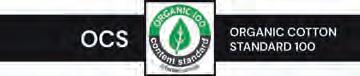 • Wir arbeiten ausschließlich mit OCS-zertifizierter Bio-Baumwolle und RCS-zertifiziertem recyceltem Polyester