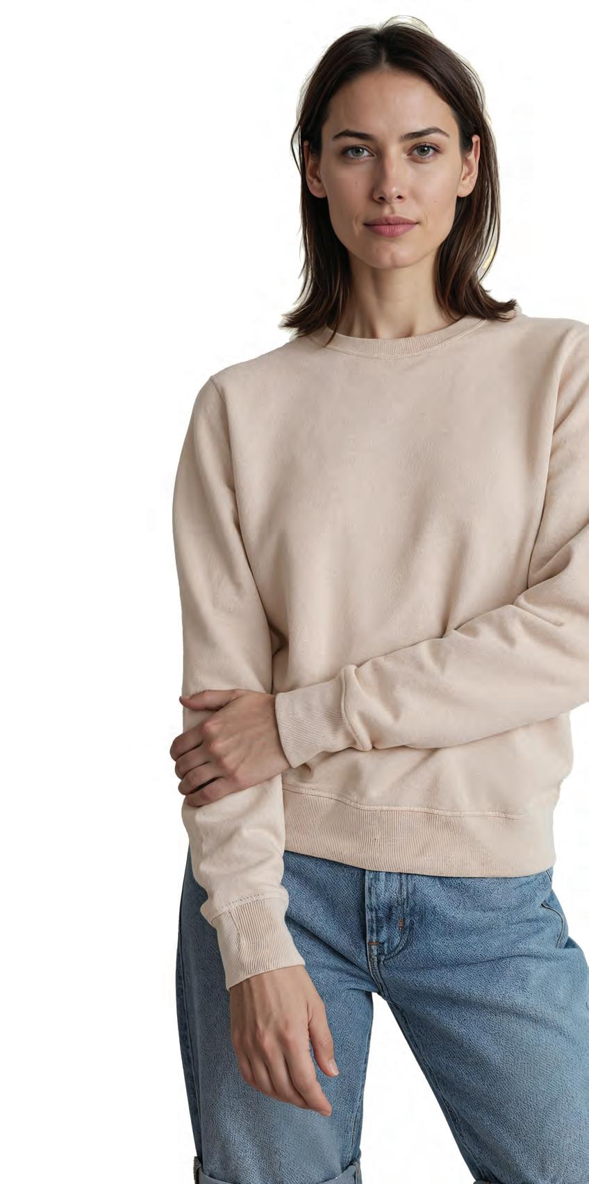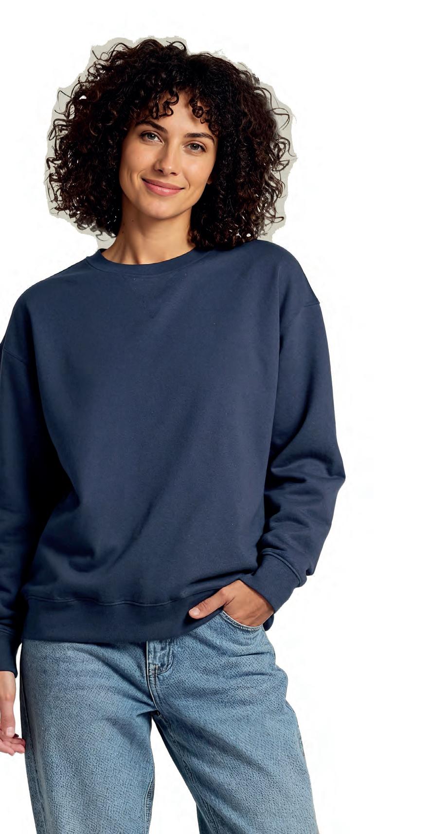 Dieses Unisex-Sweatshirt mit Rundhalsausschnitt besteht aus einer Mischung aus 80% Bio-Baumwolle und 20% recyceltem Polyester und bietet mit einem Stoffgewicht von 350 g/m² eine weiche, bequeme Passform. Der gerippte 2x1 Kragen und die Ärmelbündchen sowie der Bund sind enzymgewaschen und sorgen für ein geschmeidiges, eingetragenes Tragegefühl. Labelfree/kleines Größenetikett.