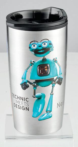 N-m 556. Formschöner, funktioneller 300 ml Thermobecher mit Druckverschluss. Material: Edelstahl, ABS. Gewicht: 237 g. Maße: Ø 68 x 165 mm. Werbeanbringung: Auf dem Körper, 17 x 70 mm (L2), 3D-Gravur, 50 x 70 mm (3DL3), 30 x 70 mm (D2), vollflächig (UVR)