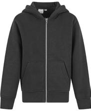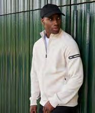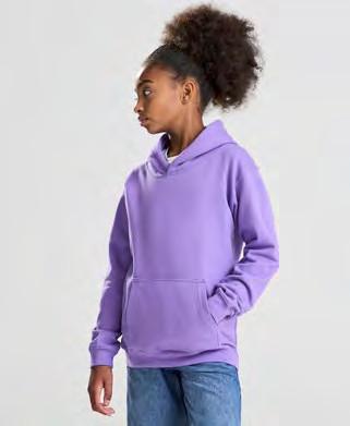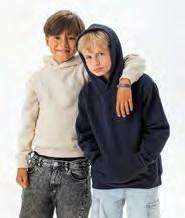 Regenerierte Baumwolle / recyceltes Polyester | Gebürstete Fleece-Oberfläche, Peached-Oberfläche | Strick-Ripp am Bund und an den Bündchen aus Eigengewebe | Gefalteter Bund | Zwickel-Segment | Ohne Logo